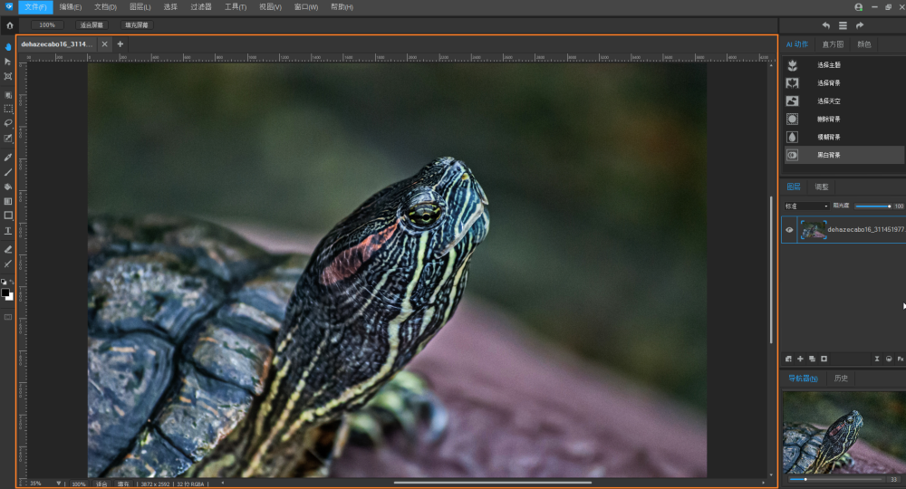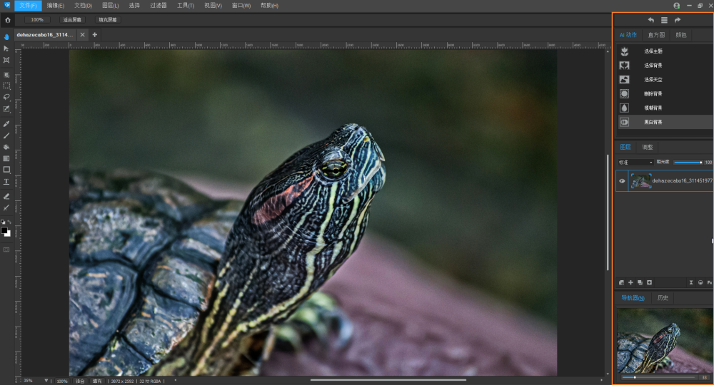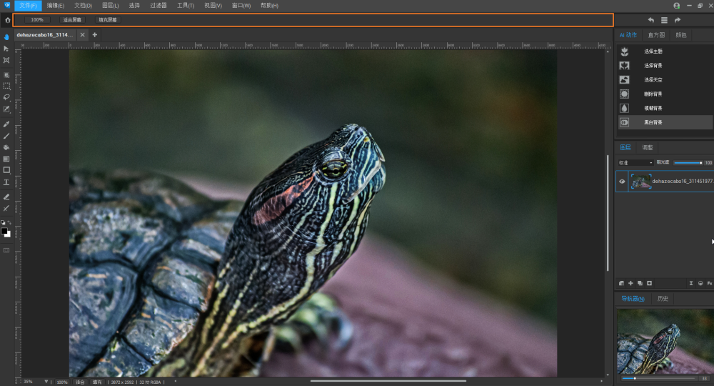 要在导航器选项卡中执行缩放操作,将图像下方的滑块向右移动可放大,向左移动可缩小,或者在相邻的字段中输入数值以获得更精确的缩放级别。