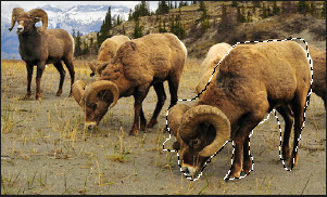 单击图像的任意区域开始选择。移动鼠标时,选区将跟随光标移动。要改变选区线的方向,请单击鼠标左键。双击完成选区。 |