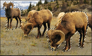 添加到选择图标,然后绕着图像的任何部分画线。 - 要从选择范围中减去,可按住 Ctrl 键或单击图像上方工具属性栏中的