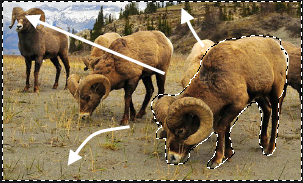 添加到选择 图标,然后在图像上方的 工具属性 酒吧中,围绕图像的任何部分进行绘制。 - 要从选区中减去,请按住Ctrl,或点击